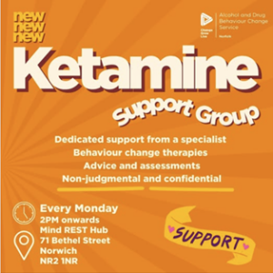 Norfolk offer a Ketamine group at the Rest Hub (Norwich) on Mondays at 2pm: